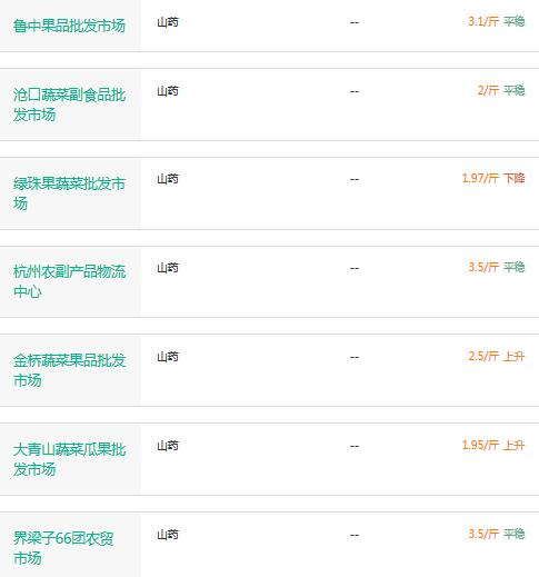 11月17日全国农批市场山药市场价格