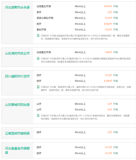 2月16日芹菜全国价格