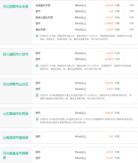 2月16日芹菜全国价格