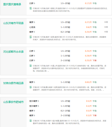 2017年3月3日萝卜价格行情