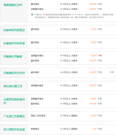 2017年3月7日南瓜价格行情