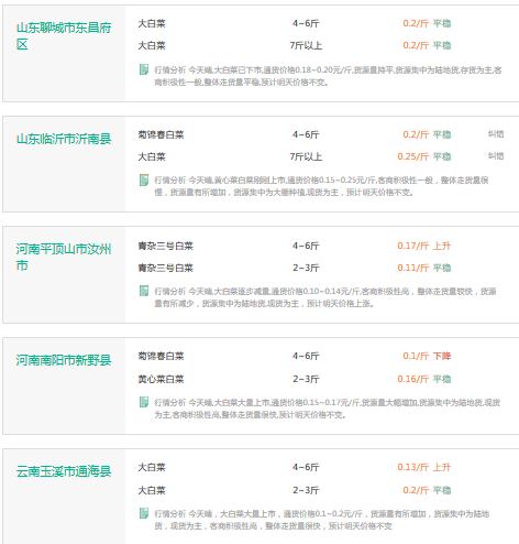2017年3月9日白菜价格行情