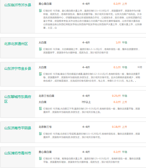 2017年3月16日白菜价格行情