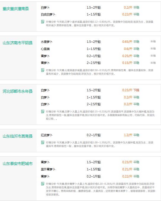 2017年3月22日萝卜价格行情
