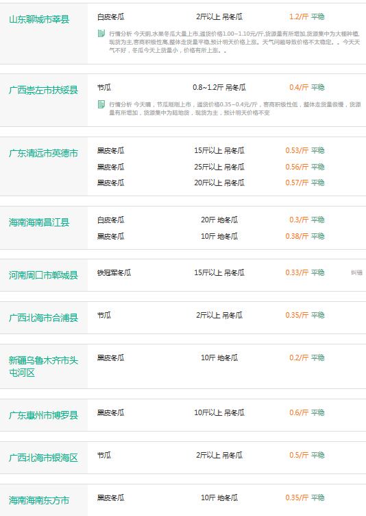 2017年3月22日冬瓜价格行情