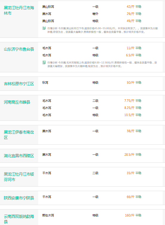 2017年3月30日木耳价格行情