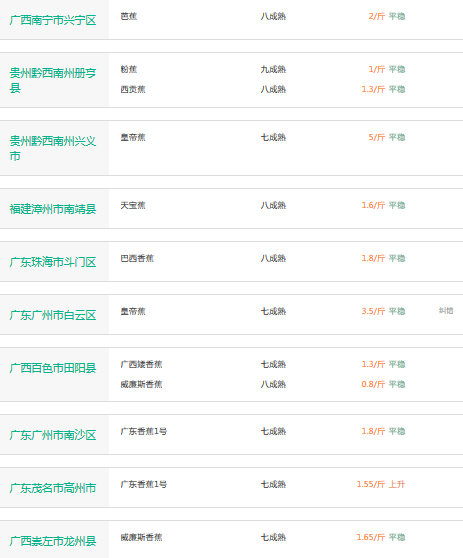 2017年3月7日香蕉价格行情