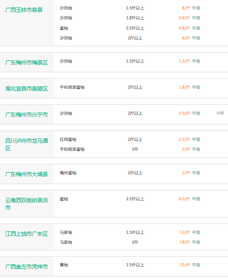 2017年3月9日柚子价格行情