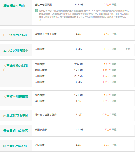 2017年3月10日菠萝价格行情