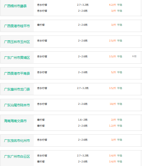 2017年3月10日柠檬价格行情