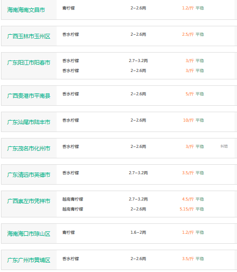 2017年3月30日柠檬价格行情