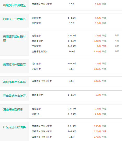 2017年3月14日菠萝价格行情