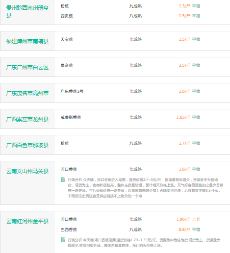 12月3日香蕉价格行情