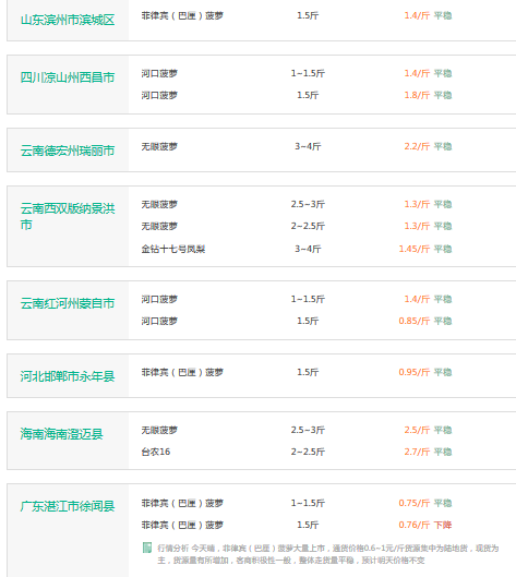 2017年3月15日菠萝价格行情