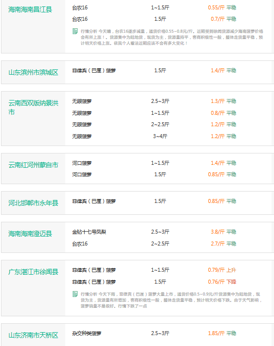 2017年3月22日菠萝价格行情