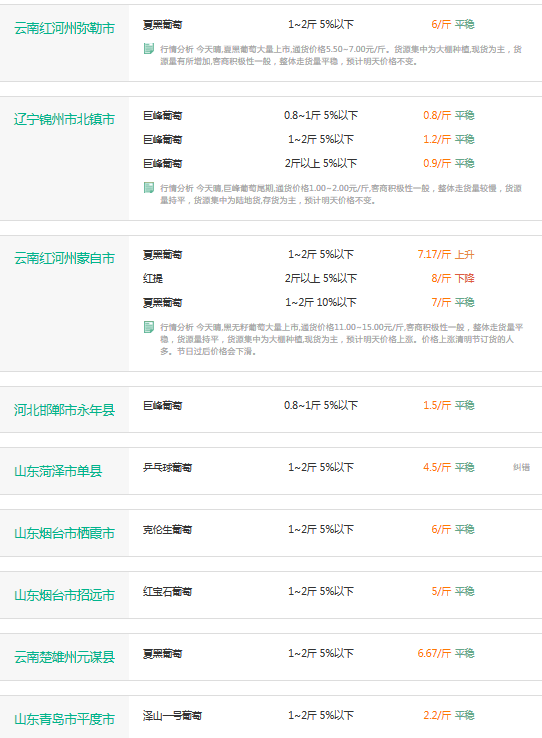 2017年3月30日葡萄价格行情
