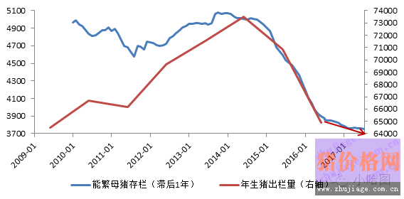 因为作为产能的母猪产的仔猪最终是要转化为生猪出栏的,所以对于母猪存栏和生猪存栏的关系可以简化处理,用PSY近似建立一个等式:当年生猪出栏=前一年平均母猪存栏×PSY。