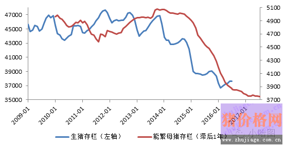 按照以往猪周期的规律,现在母猪存栏还在低点并未反转,对应明年七八月份的生猪存栏低点,所以生猪存栏在明年7月之前仍将可能震荡走低。