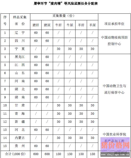 1.屠宰环节“瘦肉精”等风险监测任务分配表