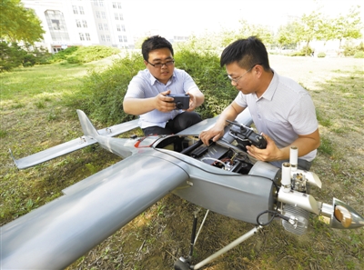 图为中心科研人员对无人机多光谱载荷做飞行前的调试。本报记者 周维海摄