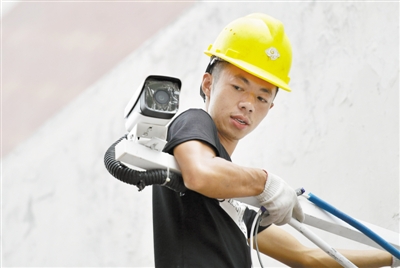 图为8月18日,技术人员在湖北省宣恩县珠山镇安装人脸识别监控系统。新华社发(宋文摄)
