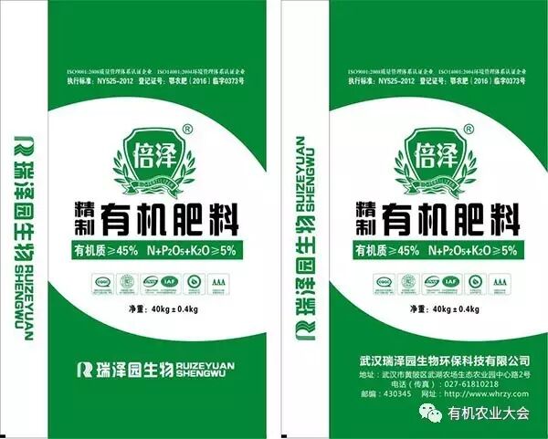 倍泽牌有机肥 武汉瑞泽园生物环保科技有限公司选送 倍泽牌精制有机肥采用企业自有牧场的奶牛粪便,依自主知识产权的发酵技术生产而成,并已获得生态环保产品认证。该产品在两次发酵过程中添加不同功能的生物菌种,其产品质量与普通有机肥相比有较大的优势,使其具有纯化土壤重金属、从而降低农产品重金属含量,修复土壤,同时可减少后期农药的使用量等多种功能。