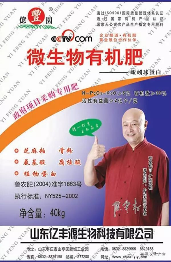 亿丰园牌有机肥 山东亿丰源生物科技股份有限公司选送 主要由豆粕、骨粉、米粉、芝麻粕、氨基酸、腐植酸、植物蛋白等有机原料,另外添加了植物营养所需的各种中微量元素。 该产品可作基肥、追肥;可穴施、撒施、条施;广泛适用于水稻、小麦、玉米、高粱等粮食作物和棉花、烟草、瓜果、蔬菜等经济作物;广泛适用于红壤、黄壤、棕壤、黄潮土、黑土、褐土、紫色土等各种性质的土壤;长期使用可以有效改善土壤结构,提高并保持土壤肥力,有利于提高作物产量,改善作物品质。