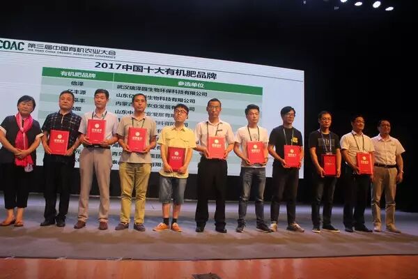 内蒙古沃丰农业发展有限公司、山东亿丰源生物科技股份有限公司、山东中新农业发展有限公司、安徽莱姆佳生物科技股份有限公司、湖北中化东方肥料有限公司、青岛海大生物集团有限公司、寿光蔡伦中科肥料有限责任公司、武汉泽源生物环保科技有限公司、湖南省中科农业有限公司、泰昌生物科技有限公司获中国有机肥十大品牌殊荣。