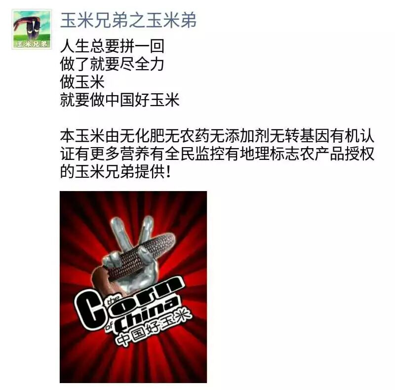 在2015年和2016年的时候,,通过多种多样的文案,用不同风格的,好玩儿的文案让大家记住了玉米兄弟。所以说文案还是很有作用的。