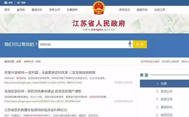 具体查询方法可参考:例如江苏地区,可以百度输入“江苏人民政府”进入江苏人民政府官网。找到搜索栏,输入“农机补贴”,就会找到相应的补贴情况。