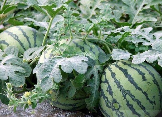 如果叶子边缘是黄色的,这意味着水分过多,植物就会生长。中午,叶子枯萎,然后恢复,表明叶子缺水。萎蔫程度和恢复时间长度表明缺水程度,浇水时间和浇水量根据上述形态特征确定。(2)土壤不应浇水,一次浇水量不应过多。(3)苗期应控制浇水量,果实膨大期应适当增加浇水量。(4)高温灌溉时,应在早晚进行,且土壤表面不能浸湿。(5)收获期前5-6天停止灌溉,以免降低含糖量,容易开裂,降低储运性能。2.灌溉技术:西瓜通常通过沟灌和灌溉来灌溉。浇水通常与施肥同时进行。生长后期干旱时,早晚应浇水一次。沟渠灌溉一般采用浅层灌溉方式,禁止漫灌。水亩距边界表面4-5厘米。时间不能太长,整个哇表面不能完全浸湿,否则会引起植物的不良反应。