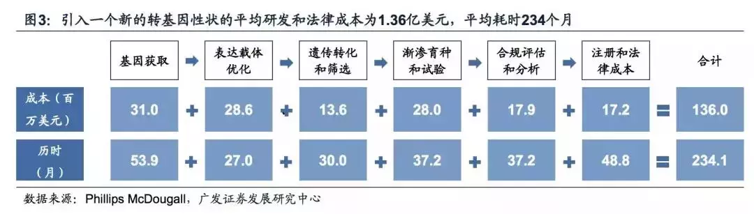 行业特性决定了种业集中化趋势。种业存在两大成本,一是高昂的研发投入,二是巨大的法律成本,据PhillipsMcDougall调查,引入一个新的转基因性状的平均研发和法律成本合计为1.36亿美元,其中为了满足监管而需付出的法律成本占比26%。
