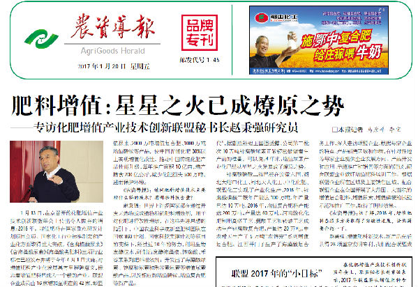 ![]() 1月13日,在京召开的化肥增值产业技术创新联盟年会上传出令人振奋的消息:2016年,增值肥料在国家重点研发计划项目立项、国家化工行业标准制定和产业化方面取得重大突破。《含腐植酸尿素》《含海藻酸尿素》《海藻酸类肥料》三项行业标准已经发布并将于今年4月1日实施,对增值肥料产业化发展具有里程碑意义,标志着增值肥料已成为一个新的产业。联盟企业成员由16家增加至现在的42家,彰显了增值肥料已经步入了产业化阶段,已经由星星之火发展成了燎原之势。 化肥增值产业技术创新联盟是个什么样的组织?增值肥料的核心技术有哪些?增值技术产业化目前是什么情况?2017年联盟确定了哪些“小目标”?带着这些问题,记者专访了化肥增值产业技术创新联盟秘书长赵秉强研究员。 《农资导报》:请您谈谈化肥增值产业技术创新联盟的基本情况?有什么样的发展愿景? 赵秉强:为加快增值肥料产业化和推广应用步伐,由中国氮肥工业协会指导、中国农科院农业资源与农业区划研究所联合国内大型尿素、磷铵、复合肥等企业,于2012年12月5日在北京成立了《化肥增值产业技术创新联盟》。联盟的宗旨是为了提升化学肥料产品附加值、提高肥料利用率、节能减排和保护环境,实现化学肥料增值产业技术的共享,确保增值化肥产业规范化、标准化和可持续发展,提高化肥行业的市场竞争能力,促进产业技术升级。 联盟的目标是:到“十三五”末,发展1000万吨增值尿素(占农用尿素25%)、1000万吨增值复合肥(占复合肥商品量25%)、500万吨增值二铵(占二铵商品量35%)。“十四五”末,每年生产2000万吨增值尿素、2000万吨增值复合肥、1000万吨增值磷铵等产品,使中国普通化肥30%以上实现增值化改性,推动中国传统化肥产品性能升级,每年推广面积10亿亩,增产粮食200亿公斤,减少化肥损失500万吨,进而保护环境。 《农资导报》:请问肥料增值技术主要指什么样的技术?有哪些科技含量? 赵秉强:世界上许多国家都在通过开发天然物质或植物源的肥料增效剂,用于对化肥进行改性增效,在这样先进思想的指引下,中国农业科学院新型肥料团队在国家863计划、国家科技支撑计划等项目的支持下,经过近10年的努力,利用生物发酵技术,研制出发酵海藻液、锌腐酸、禾谷素系列肥料增效剂;开发出了海藻酸尿素、锌腐酸尿素和禾谷素尿素等增值尿素新产品,以及相应的增值磷铵、增值复合肥等新产品。 目前我们所说的增值肥料是增效肥料的一种,专指肥料生产过程中加入海藻酸类、腐植酸类和氨基酸类等天然活性物质所生产的肥料改性增效产品。海藻酸类、腐植酸类和氨基酸类等增效剂都是天然物质或是植物源的,可以提高肥料利用率,且环保安全,对环境、作物和人体无害。增效剂具有微量高效的特点,添加到传统肥料生产工艺中,肥料养分含量基本不受影响,增效效果十分明显,具有工艺简单、成本低、效果好等明显优势。联盟多年来做的增值尿素网络化效果验证试验结果表明,增值尿素作物平均增产9.6%,氮肥利用率平均提高7.9个百分点。 《农资导报》:增值尿素、增值磷铵、增值复合肥当前产业化情况如何? 赵秉强:2012年,化肥增值产业技术创新联盟成立时,国内16家尿素生产企业、2家增效剂企业和20家科研与推广单位成为了首批联盟理事会成员,到2016年底,联盟成员企业已经增加至42家。迄今,增值尿素、二铵、复合肥新产品已在心连心、瑞星集团、中海化学、河南骏化等联盟30多家企业实现产业化,产能超过了1000万吨,3年累计推广新产品500万吨,推广面积1亿亩,增产粮食30亿公斤。 联盟统计,2016年,有22家联盟成员企业在生产增值尿素,其中2016年新增了水富云天化、湖北宜化、山西天泽化工、山西兰花、晋煤中能、青海盐湖化工、四川美丰等企业,当前增值尿素累计产能1000万吨,产量已达90万吨。水富云天化2016年首次生产锌腐酸尿素3万吨投放到市场销售一空后,公司制订了增值黑尿素逐渐替代已经做出品牌的“金沙江”白尿素的战略部署,同时将黑尿素定位为“金沙江富二代”,据副总经理王国强透露,公司第二批次10万吨锌腐酸尿素正紧锣密鼓做着生产前的准备。可以说,4年来,增值尿素产业化已经从星星之火发展成了燎原之势。 锌腐酸磷酸二铵已经在安徽六国、湖北大峪口化工、河北天人化工、中化化肥、联盟化工实现了产业化生产,2016年,锌腐酸磷酸二铵年产能达100万吨,年产量已达10万吨。2016年,增值复合肥料产能达200万吨,产量达60万吨,河南骏化化肥利用高塔工艺、氨酸工艺和转鼓工艺成功生产锌腐酸复合肥,产量达20万吨,中农舜天生产了5万吨“农锌安”系列增值复合肥;江西开门子生产了海藻酸复合肥,产量20万吨;山东恩宝生产了海藻酸复合肥,产量超过10万吨;联盟化工、安徽六国等生产增值复合肥5万吨。目前,增值复合肥销售区域逐步扩大,已辐射河南、山东、安徽、江西、江苏、辽宁、吉林、黑龙江等地区,企业赢得了利润,农民得到了实惠。 《农资导报》:2016年,增值肥料示范推广方面取得了哪些成绩? 赵秉强:2016年,联盟成员企业在全国各区域开展了增值肥料示范推广工作,增值肥料的田间应用效果受到农户和经销商的广泛好评。四川美丰的试验表明,在成都水稻上使用海藻酸尿素,在减量1/3的条件下,较普通尿素能明显提高氮肥的利用率,改善水稻植物学性状,