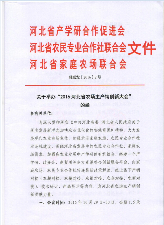 关于“2016河北省农场主产销创新大会”