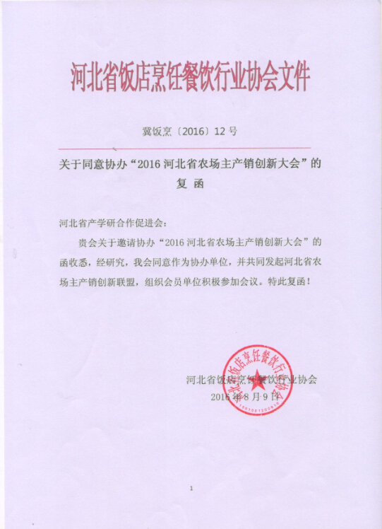 2.协办单位:中国绿色生态环境修护联盟、河北省商业联合会、河北省饭店烹饪餐饮行业协会、河北省农业技术推广协会、河北省食堂与快餐行业协会、河北省农村产权交易中心。