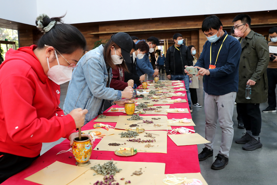 10月18日,记者拍摄香囊制作。中国日报记者 王壮飞 摄