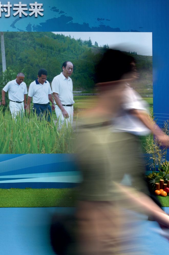碧桂园总部前,展示着杨国强考察农业的照片。摄影:史小兵