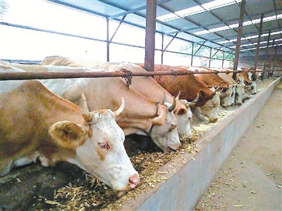 在孟家村的半山腰处,牛舍顺山势而建,形成一道独特的风景线。养殖场内,成群的牛或吃草、或打盹。不远处,村民孟俊青正在清洁卫生。他是牛舍的“管理员”,也是盛和养殖专业合作社的理事长。孟俊青说,2014年10月,村集体和村民入股,成立了平定县盛和养殖专业合作社,引进了40多头西门塔尔牛,开始了调产之路。这些年来,合作社的养牛规模已扩展到了80多头,还卖了不少肉牛。