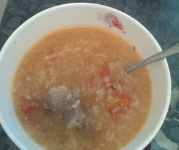 排骨8两,蕃茄2个,水12杯,米1杯,盐1/2小匙,鸡粉1小匙