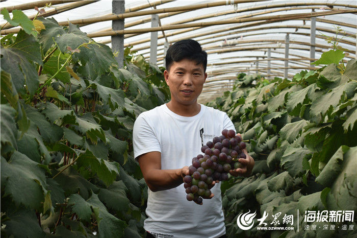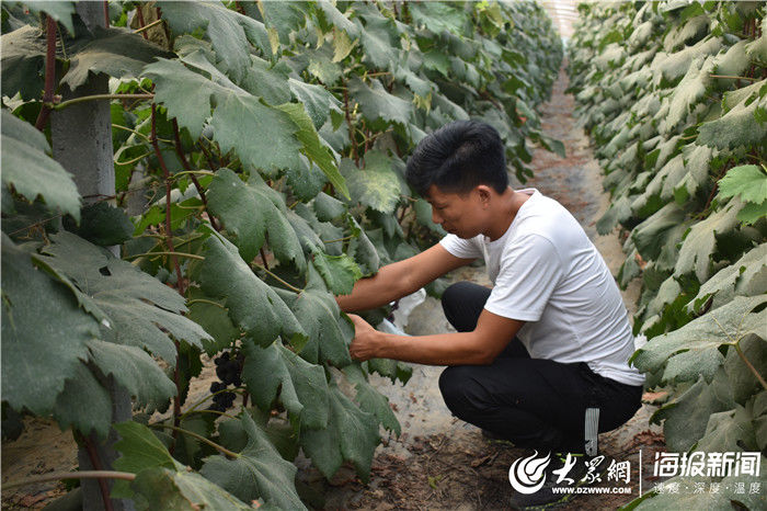 大众网·海报新闻单县7月25日讯(记者 吴超楠)7月25日,记者来到位于单县东城办事处马庙行政村孟庄村,看到万继增正在葡萄地内摘葡萄,一串串晶莹的葡萄挂在枝头,个个又大又圆,让人垂涎欲滴。看到记者到来,万继增非常热情,开心地向记者展示自己种植的葡萄。