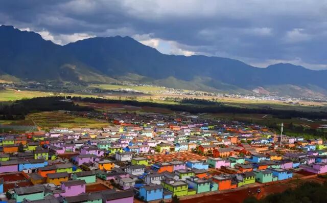 九色玫瑰小镇位于丽江市古城区七河镇金龙村。九色玫瑰小镇的名字起源于金龙村422户居民,一共包含了纳西族、白族等9个生活在这里的少数民族,所以用了9种不同的颜色表示,村民们为自家的房子挑选颜色,艺术感十足。